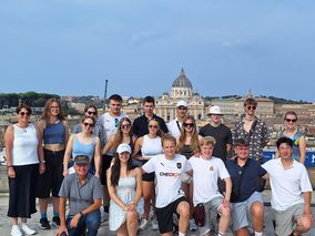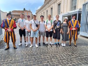 Eine Studienfahrt 2024 führte 20 Schülerinnen, Schüler und Lehrkräfte der Stiftsschule an diese Stätten. Ein Highlight war auch das Mittagsgebet - der Angelus - mit Papst Franziskus vor dem Petersdom.